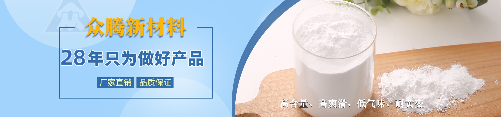 南通海門眾騰新材料科技有限公司與德國(guó)ZOTN公司合作,始建于1995年,地處長(zhǎng)江三角洲與國(guó)際大都市上海隔江相望,座落于江蘇省南通市海門區(qū)。公司固定資產(chǎn)2000萬(wàn)元,具備先進(jìn)、齊全的科研設(shè)施,擁有一批已積累多年開發(fā)、技術(shù)應(yīng)用經(jīng)驗(yàn)的專業(yè)技術(shù)人員,同類產(chǎn)品采用目前國(guó)際先進(jìn)的自動(dòng)控制裝置。產(chǎn)品主要有芥酸酰胺、硬脂基芥酸酰胺、油酸酰胺、硬脂酸酰胺、塑料光亮劑、塑料抗靜電劑、EBS、EBO、開口劑等,廣泛應(yīng)用于生物降解材料、母料、塑料、吹膜、PE粉末涂料、 油墨等行業(yè),年銷售量3000噸,出口量占60%。公司產(chǎn)品均已通過(guò)SGS綠色環(huán)保檢測(cè),符合歐盟ROHS環(huán)保指令,并達(dá)食品、醫(yī)藥級(jí)要求。忠誠(chéng)合作,和諧創(chuàng)造!讓我們攜手并進(jìn),共創(chuàng)美好明天!